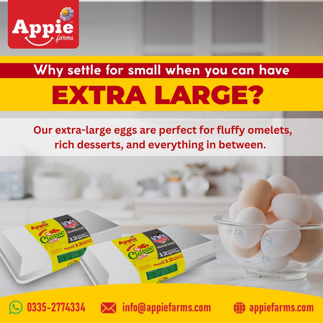 Appie Farms Extra Large Eggs are perfect for those who want more in every bite. With their rich flavor and exceptional quality, these farm-fresh eggs are ideal for hearty breakfasts and baking needs. These 06, 12 & 15 piece pack ensures superior taste and nutrition for your family.